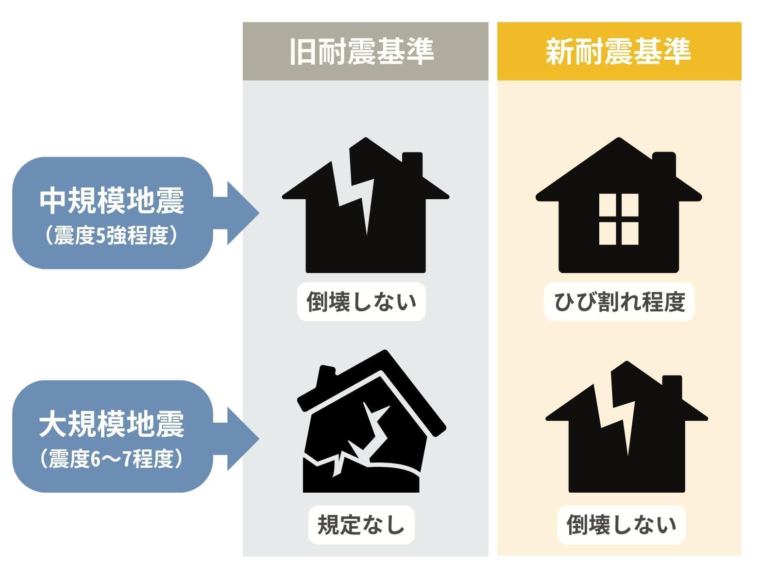 新耐震基準では震度6強から7程度の大地震でも倒壊しないことが求められています。