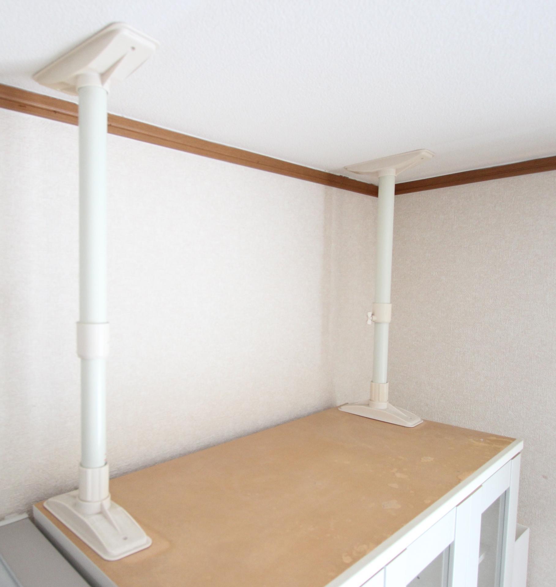 L字金具や突っ張り棒などで家具を固定することで、室内での事故リスクを大きく減らすことが可能です。