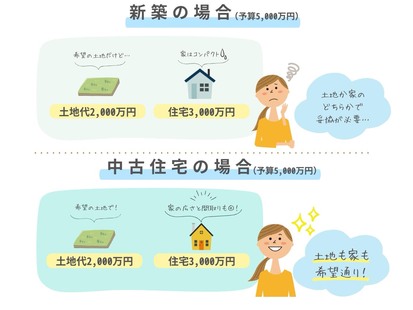 たとえば5,000万円の予算の場合、新築では広さや設備を諦めなくてはならないケースも少なくありません。