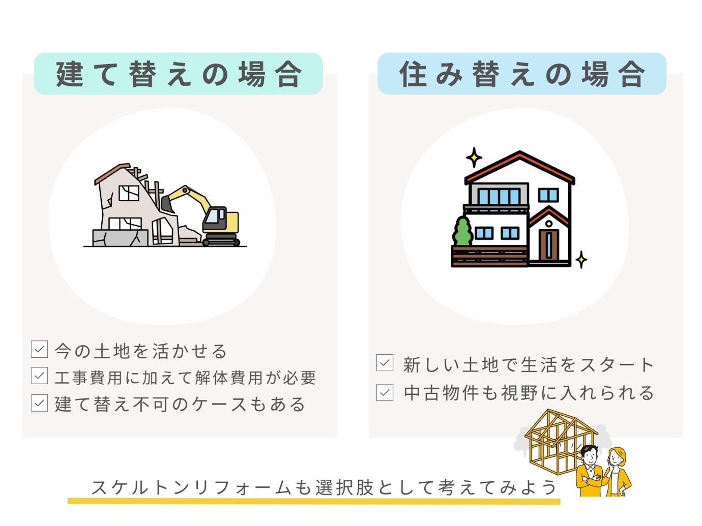 建物の老朽化やライフスタイルの変化に合わせて、建て替えや住み替えを検討する時期も、やってくるかもしれません。