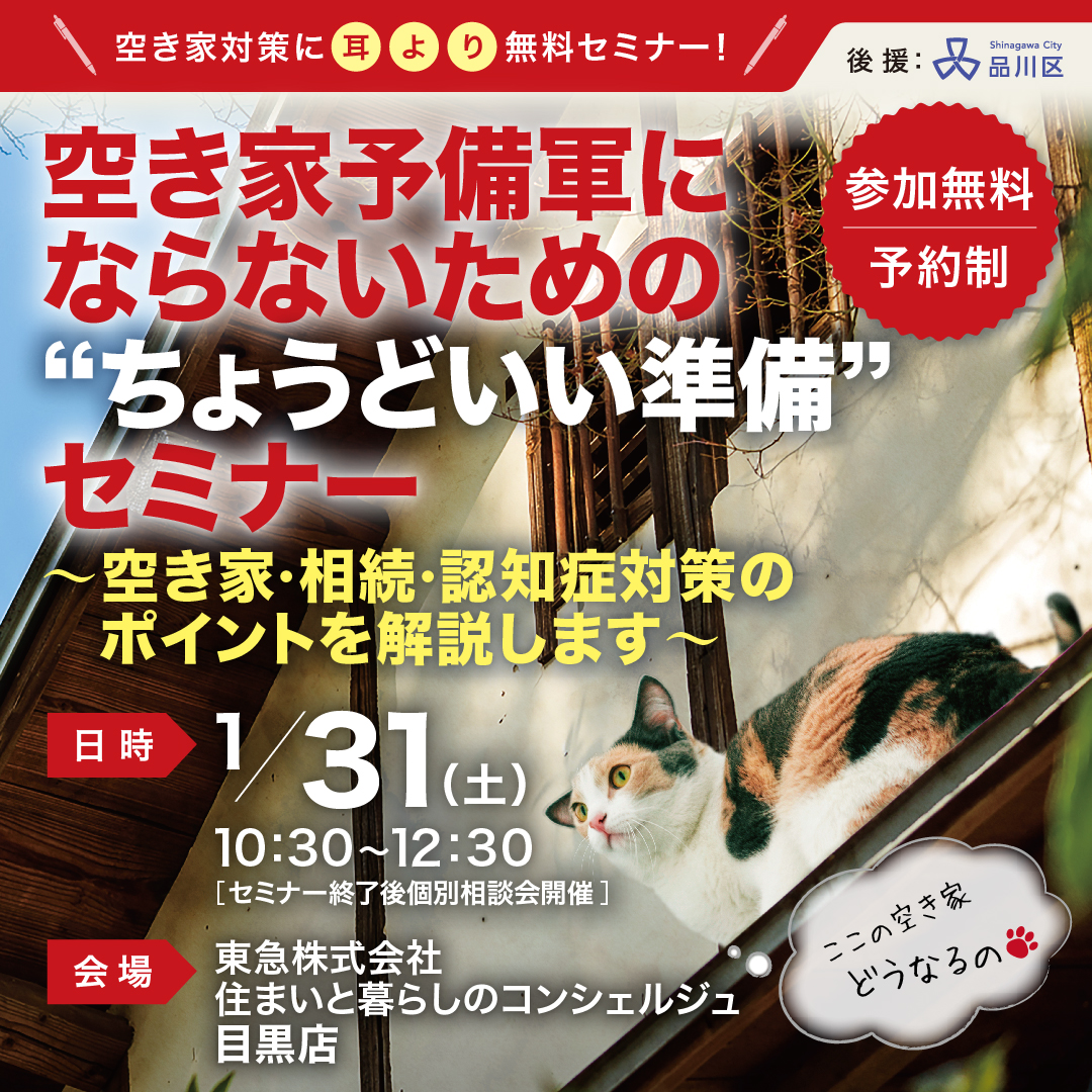 |1/31(土)|空き家予備軍にならないための“ちょうどいい準備” セミナー (後援:品川区)NEW